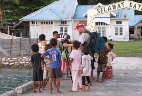 Traveling to Raja Ampat takes almost as long as a trip to Antarctica and feels almost as remote. From San Francisco we flew west for three days, finally reaching Sorong, Indonesia, the gateway to the Raja Ampat Islands. There we boarded a boat and made a four-hour journey to Southeast Misool, passing only a boat or two along the way as we approached the seemingly endless chains of dark jagged islands.